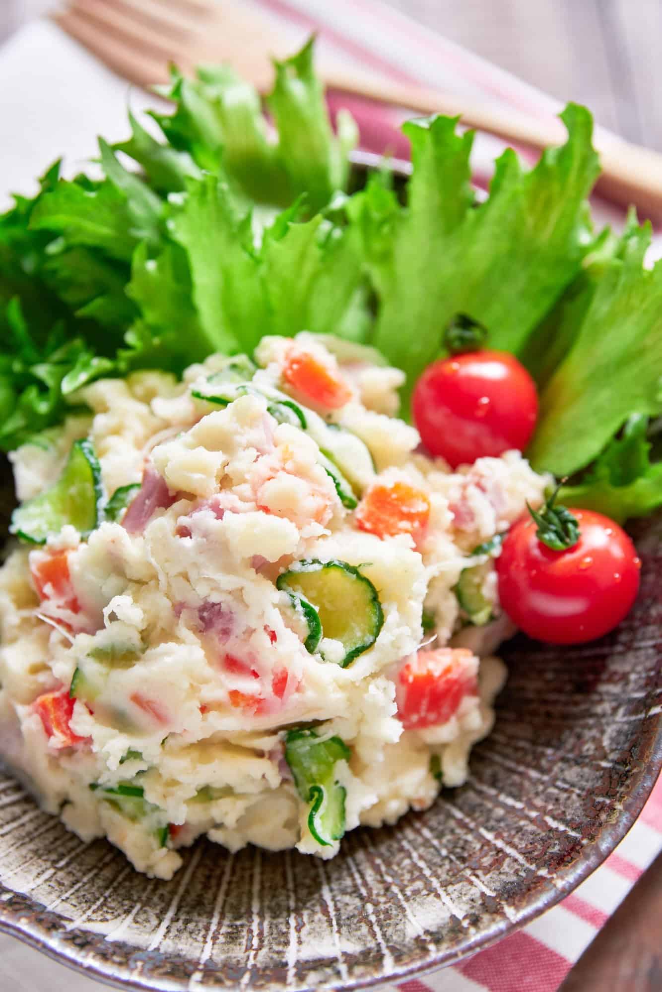 Place them in a pan with enough water to just cover the potatoes and boil until they become soft. Use a strainer to drain the water that has accumulated at the bottom of the bowl and rinse the cucumber slices. ½ cup Japanese mayonnaise preferred 1 tsp. Summer cookouts and holiday get-togethers are where potato salads typically shine but this recipe for Japanese Potato Salad ポテトサラダ is one I enjoy making year-round.